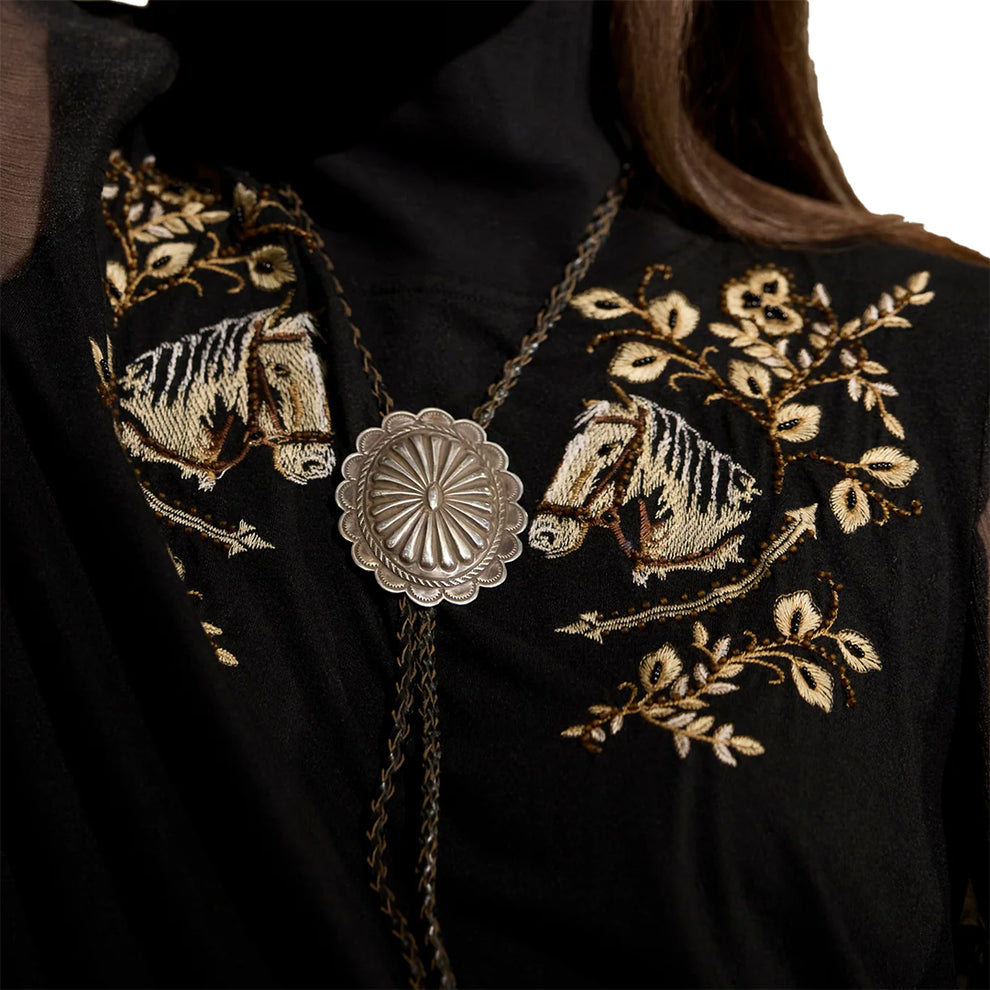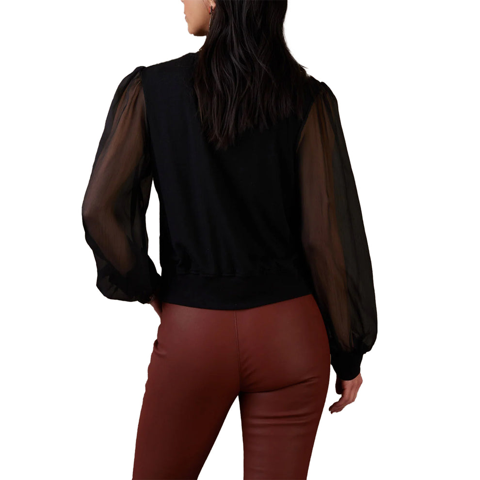 This elegant top brings together style elements of intricate embroidery, a flattering silhouette, and sheer sleeves for a unique statement piece that can effortlessly level up your look.