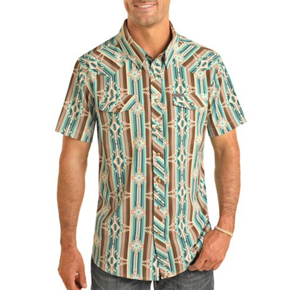 The Vertical Stripe Aztec Two Pocket Shortsleeved Snap Shirt seamlessly blends two classic styles into one stylish garment. Featuring vrtical stripes and Aztec-inspired patterns, this shirt offers a unique and eye-catching look. With its short sleeves and snap closure, it's both fashionable and functional.