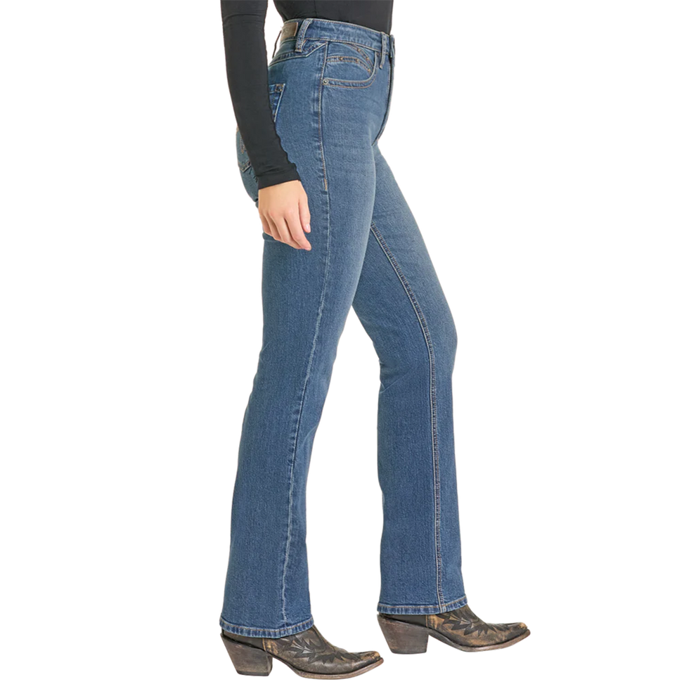 Add some edge to your wardrobe with these High Rise Brown Modest Bootcut Jeans. Made from a cotton/spandex blend, these jeans have a classic boot cut and a studded front pocket, perfect for making a statement.