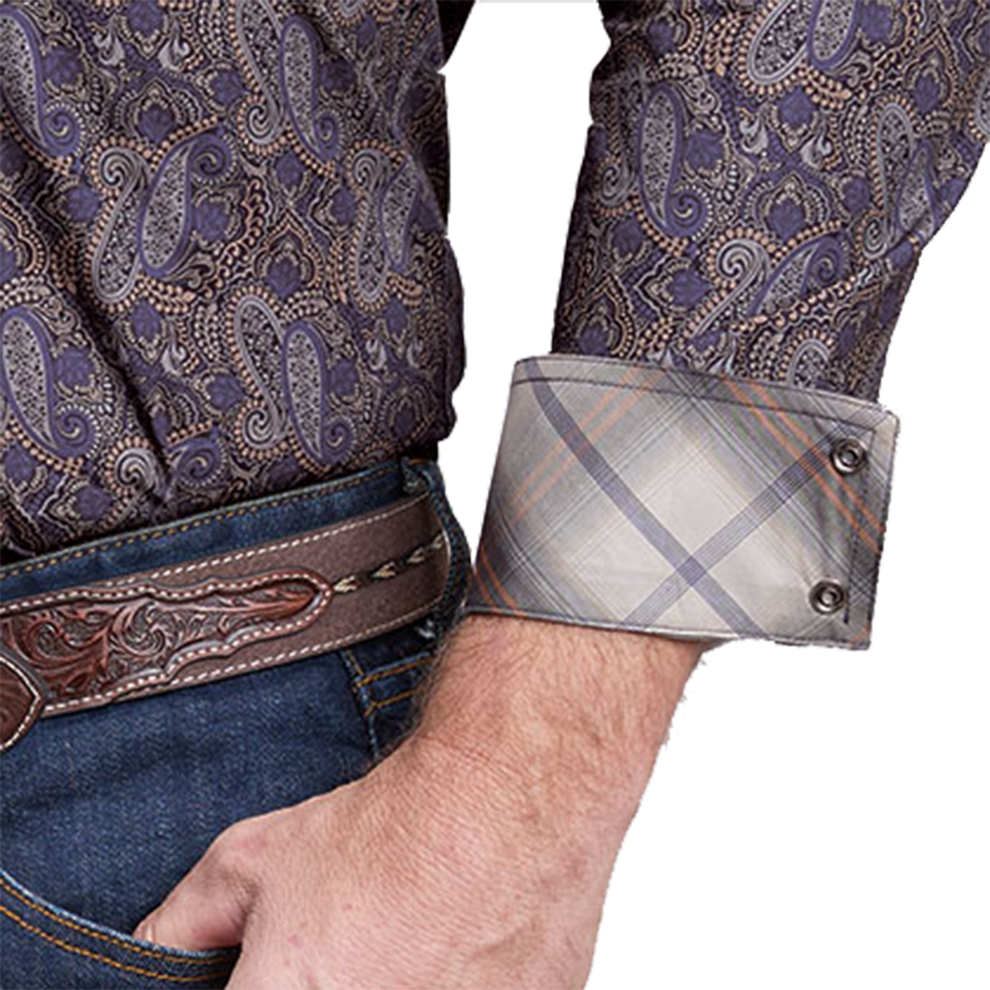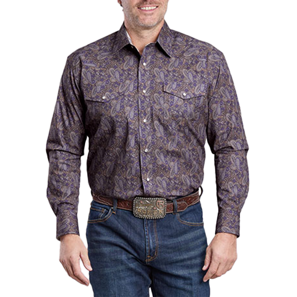 Add a bold western edge to your wardrobe with the Roper Men's Amarillo Collection Paisley Snap Shirt. Featuring a striking paisley print, this long sleeve shirt is styled with classic western details, including a 1-point front yoke into the neck, a 1-point back yoke, and 1-point flaps and pockets. The snap front and 2-snap cuffs offer traditional western functionality, while signature Roper "R" embroidery adds an authentic finishing touch. Perfect for dressing up or down, this shirt brings timeless style and comfort to any occasion.