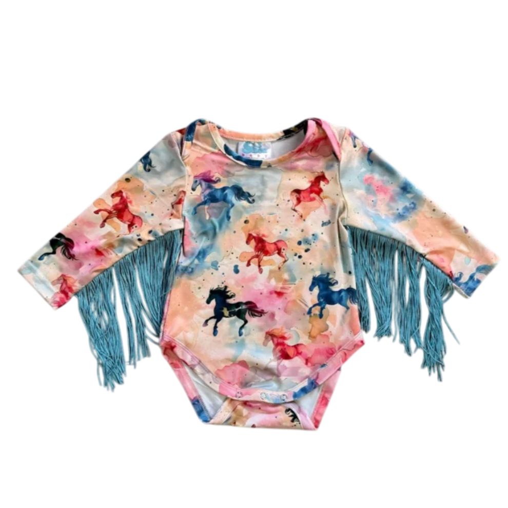 This adorable Onesie is the perfect addition to any fall and winter collection! Soft, comfortable and stylish! This print will pair with multiple styles of Shea Baby Boots. Don't forget to complete the look with our matching bows and concho belts!