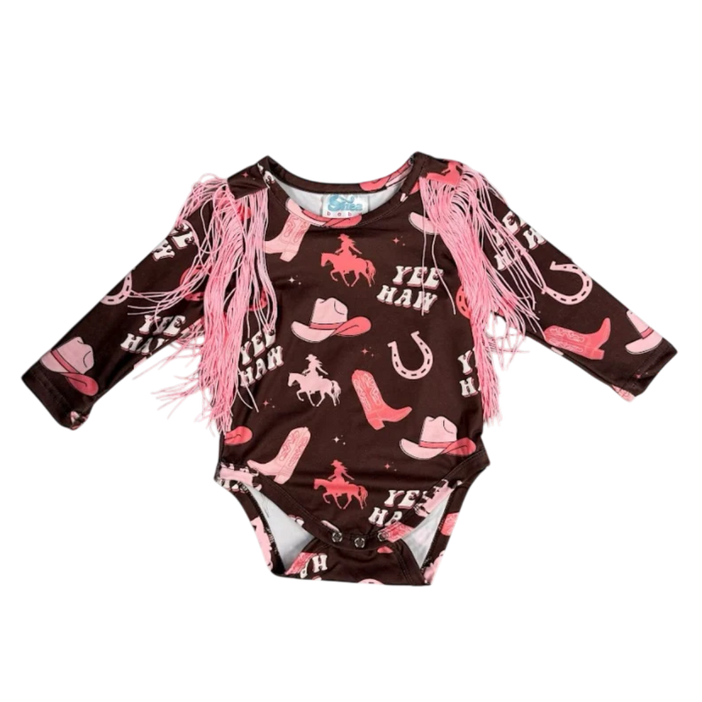 This adorable Onesie is the perfect addition to any fall and winter collection! Soft, comfortable and stylish! This print will pair with multiple styles of Shea Baby Boots. Don't forget to complete the look with our matching bows and concho belts!