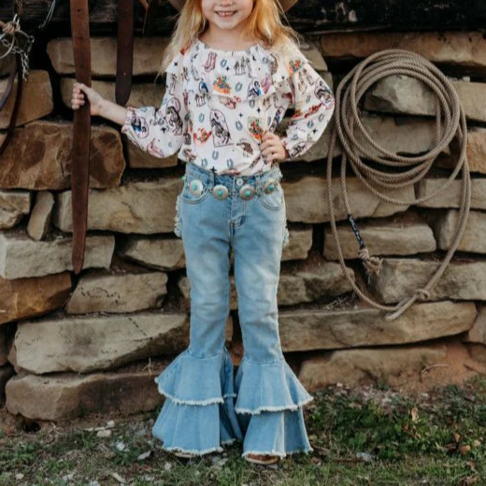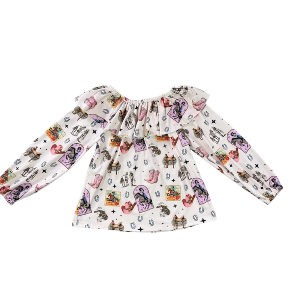This adorable Shirt and Onesie is the perfect addition to any fall and winter collection! Soft, comfortable and stylish! This print will pair with multiple styles of Shea Baby Boots. Don't forget to complete the look with our bows and concho belts!