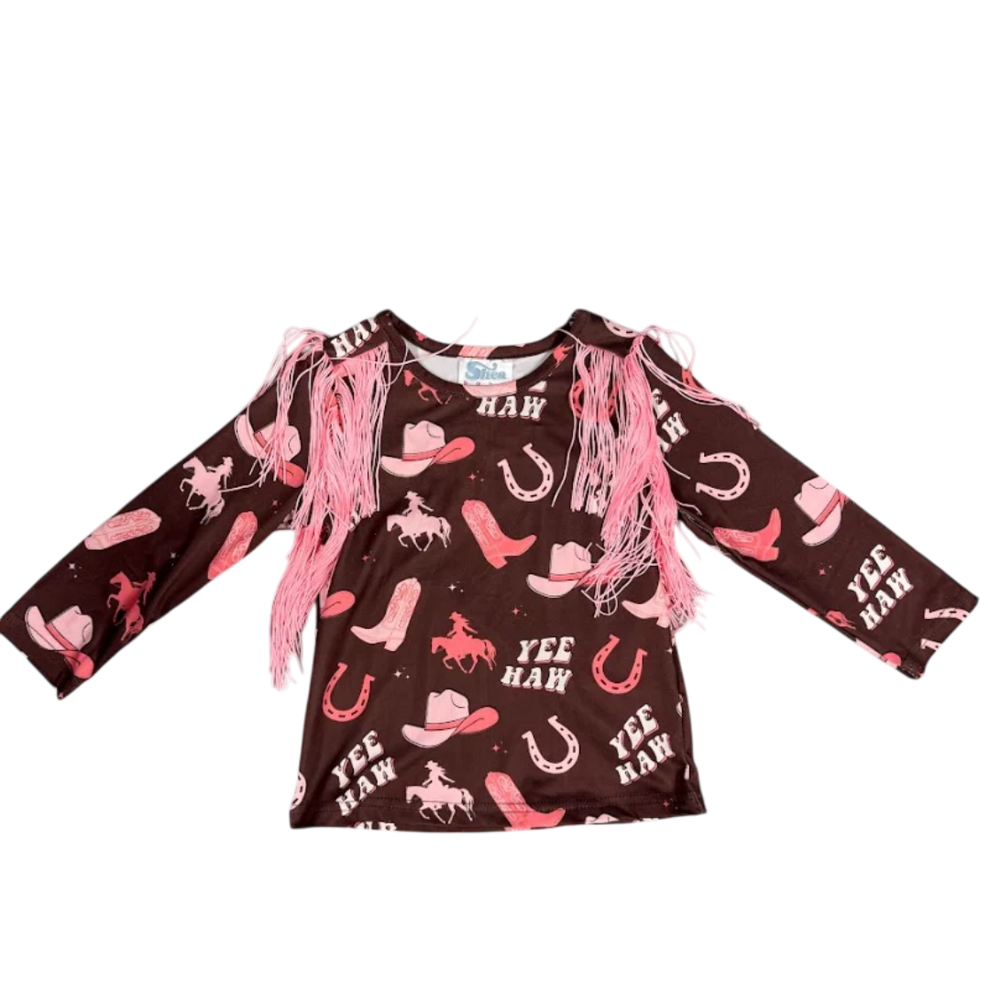 This adorable Shirt and Onesie is the perfect addition to any fall and winter collection! Soft, comfortable and stylish! This print will pair with multiple styles of Shea Baby Boots. Don't forget to complete the look with our bows and concho belts!