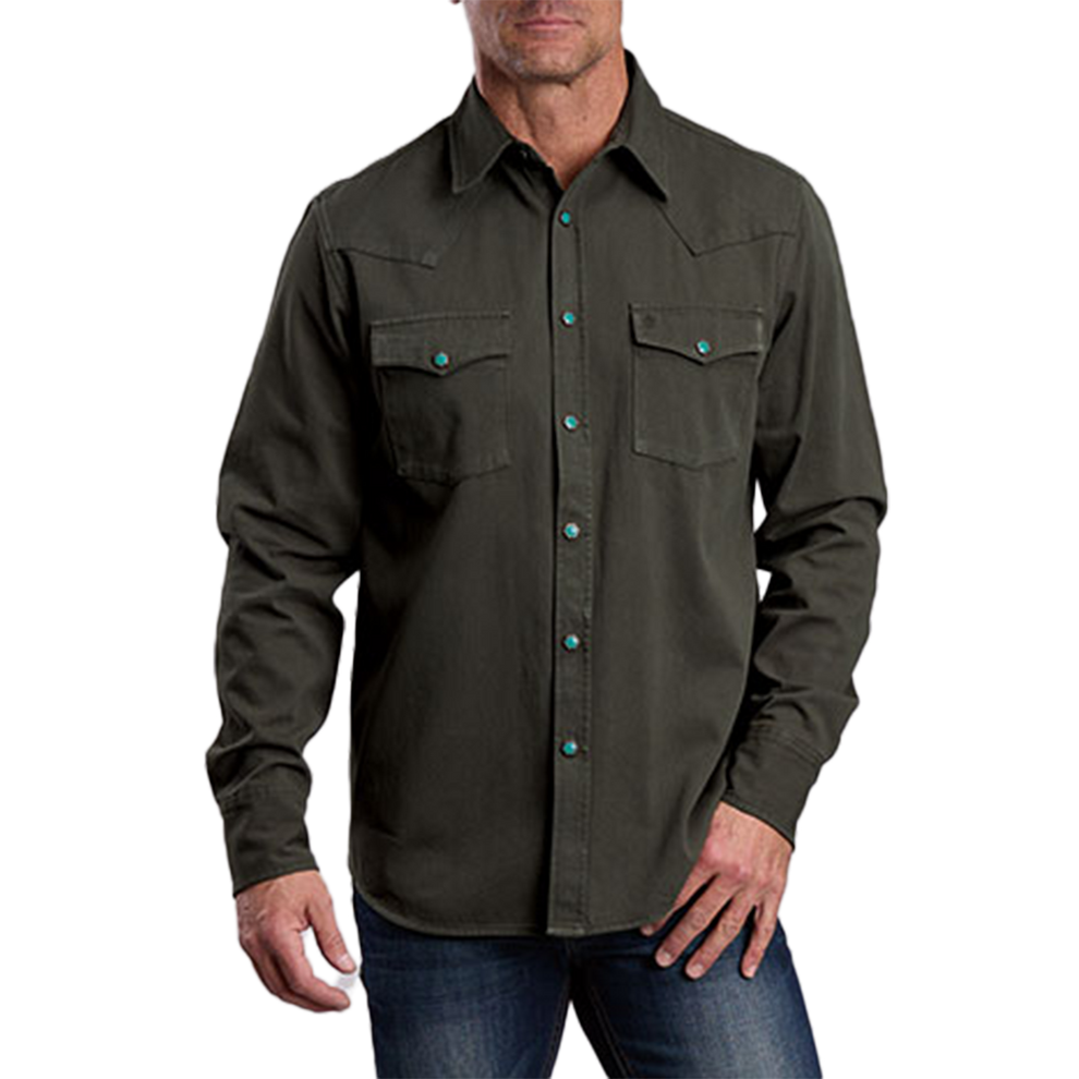 The shaped 1-point chest pockets with flaps, 3-snap cuffs, and signature turquoise snap front closure add authentic detail. Designed with a standard fit, this durable twill shirt is a versatile staple for any cowboy’s wardrobe—built for work, weekends, and everything in between.