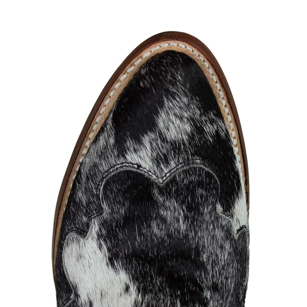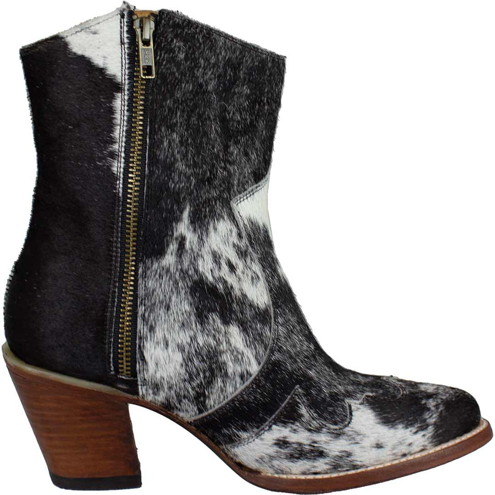 The Jolene hair-on hide short boot is handcrafted in Leon, Mexico from quality certified and handpicked cowhide. Stunning scalloped edge stacked cowhide layers with a zipper on the side for an easy on and off wear.