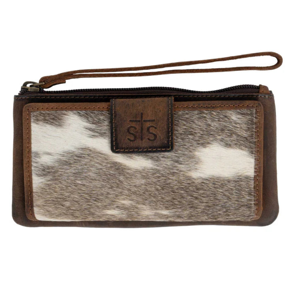 The STS Ranchwear Women's Cowhide Haley Wallet is where Western charm meets everyday functionality. Crafted from genuine cowhide with full-grain oiled and waxed leather accents, this stylish wallet is both durable and distinctive. It features a secure zip-top closure, an exterior zip pocket for quick access, and a removable leather wristlet strap for easy carrying. Inside, you'll find a well-organized snap compartment with 8 card slots, 2 ID windows, and a slip pocket—perfect for keeping everything in its place.