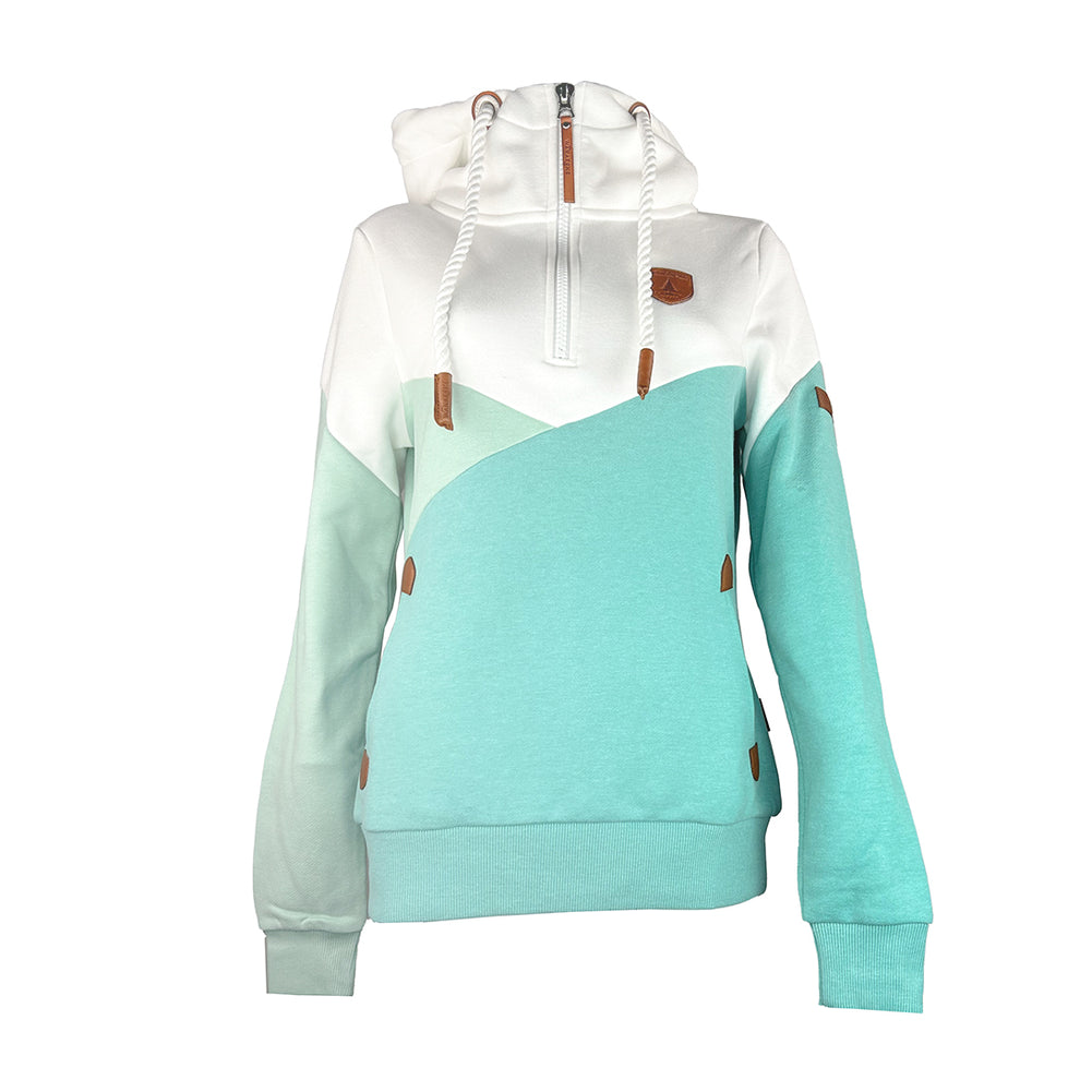 From Wanakome, this women's terry hoodie will be your new favourite. It has a 1/4 zip neckline, front kangaroo pocket and a figure flattering colour-block design.