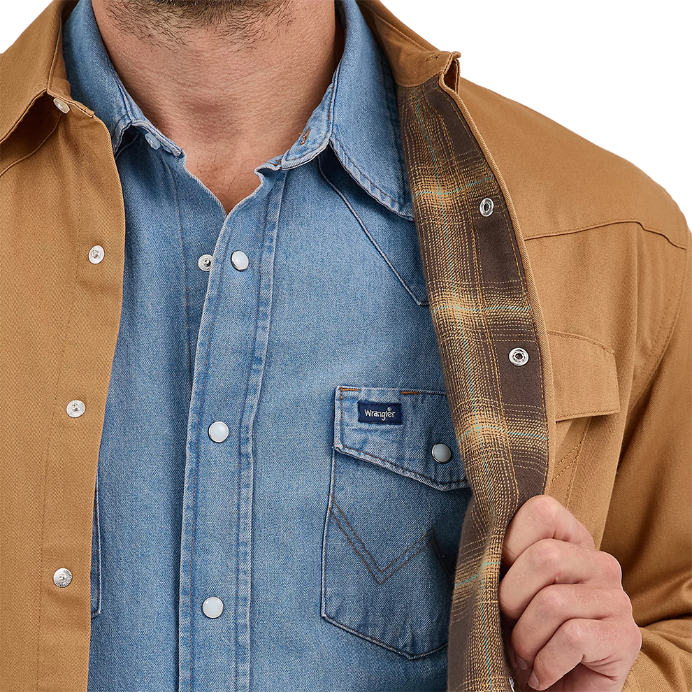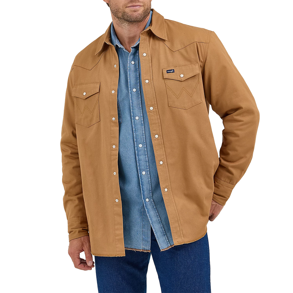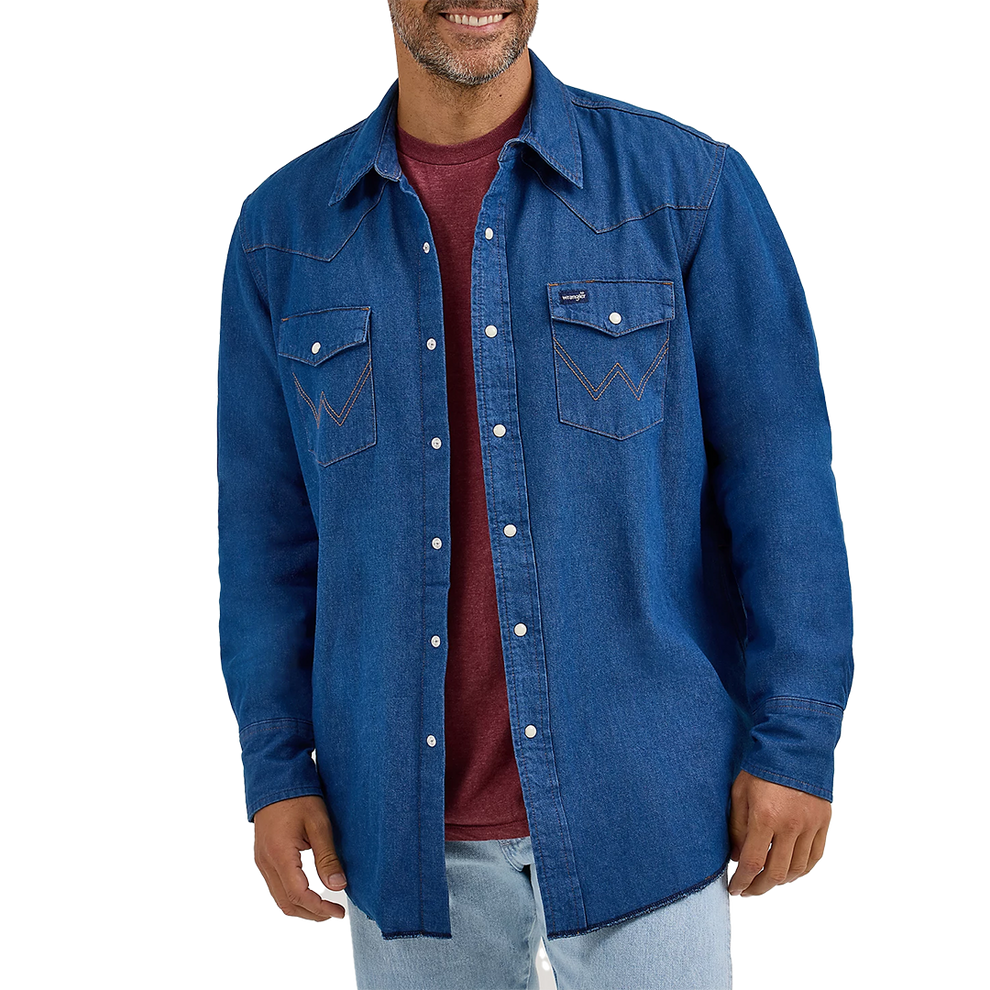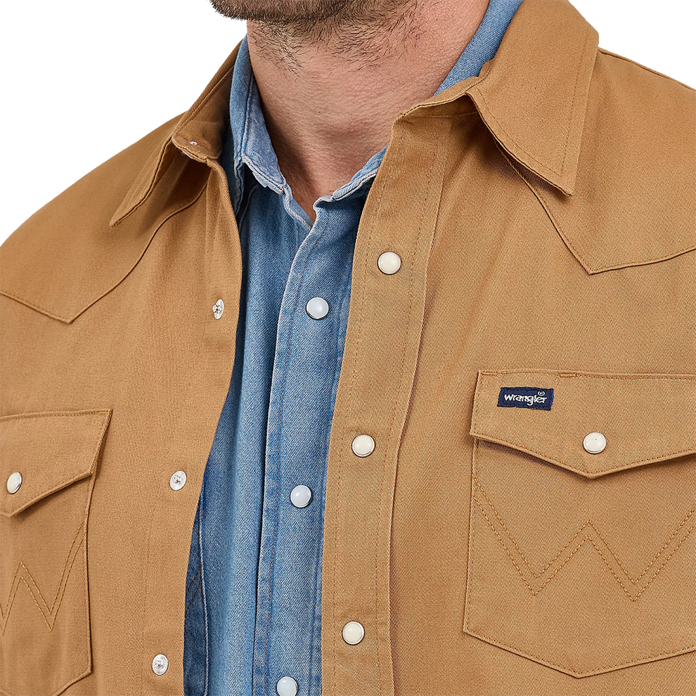Plus, it comes with all the tell-tale markings of a genuine Wrangler snap shirt, including twin snap flap pockets, Western yokes, a riser label, side seam pockets, surged tails, and snaps, plus a pencil pocket for convenience. This men's work shirt will earn a permanent spot in your rotation for work, play, and everything in between.