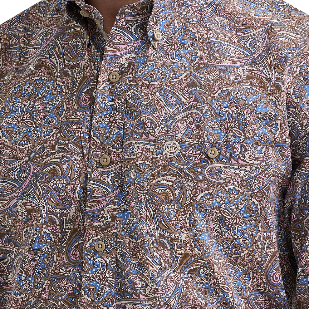 Take the spotlight in style wearing the George Strait™ One-Pocket Button-Down Shirt. This long-sleeve button-down features a straight back yoke, one chest pocket, and adjustable cuffs. With its relaxed fit, this classic collared shirt offers plenty of room through the shoulders and torso. Plus, it comes in a wide variety of colors and patterns.