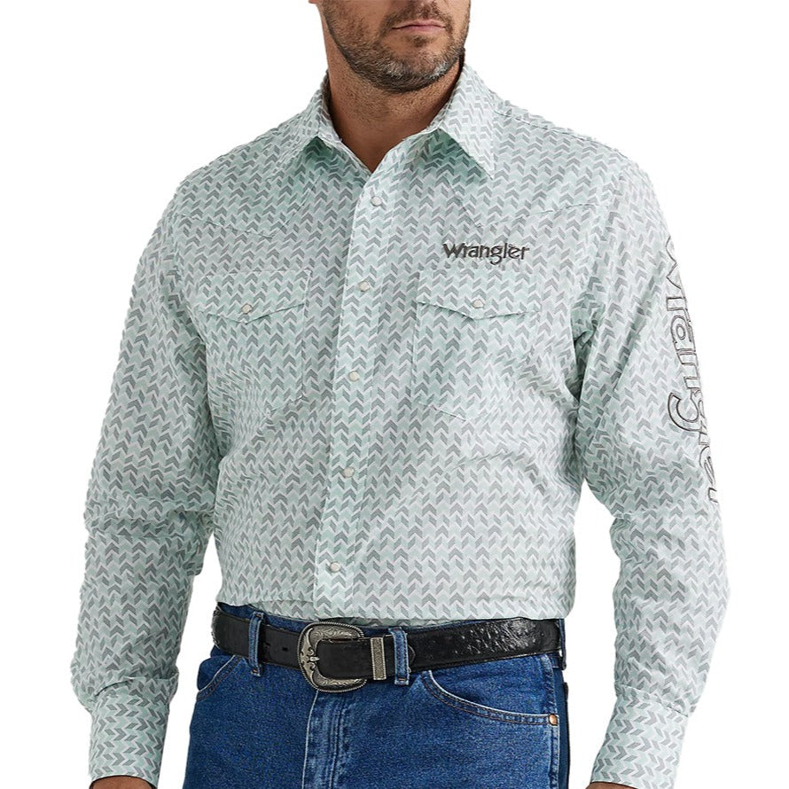 With no shortage of Western credibility, the Wrangler logo long sleeve snap shirt represents a true original in the American west.
