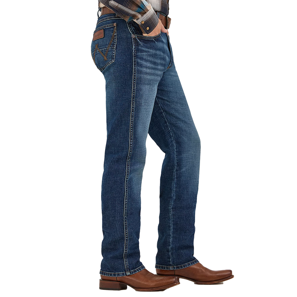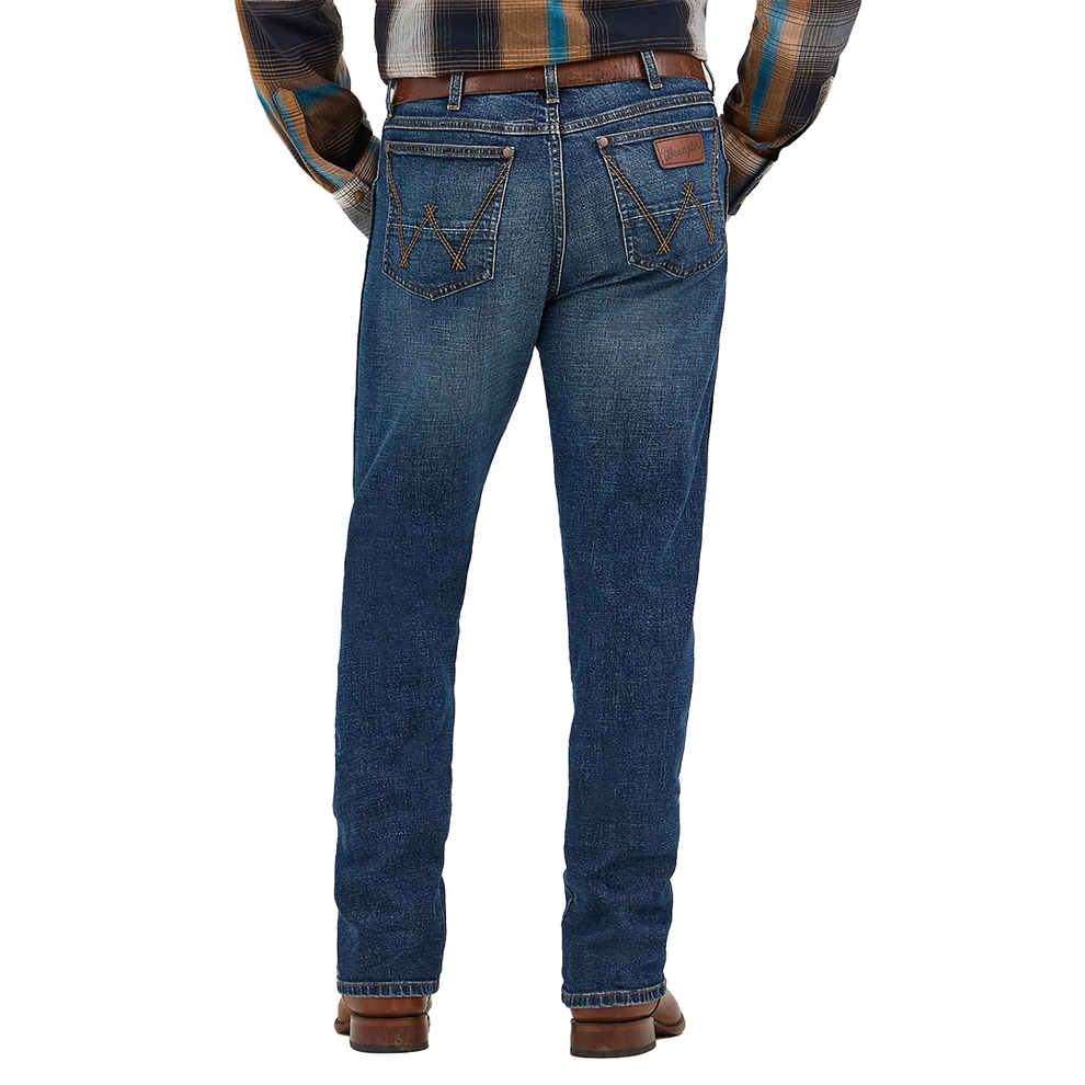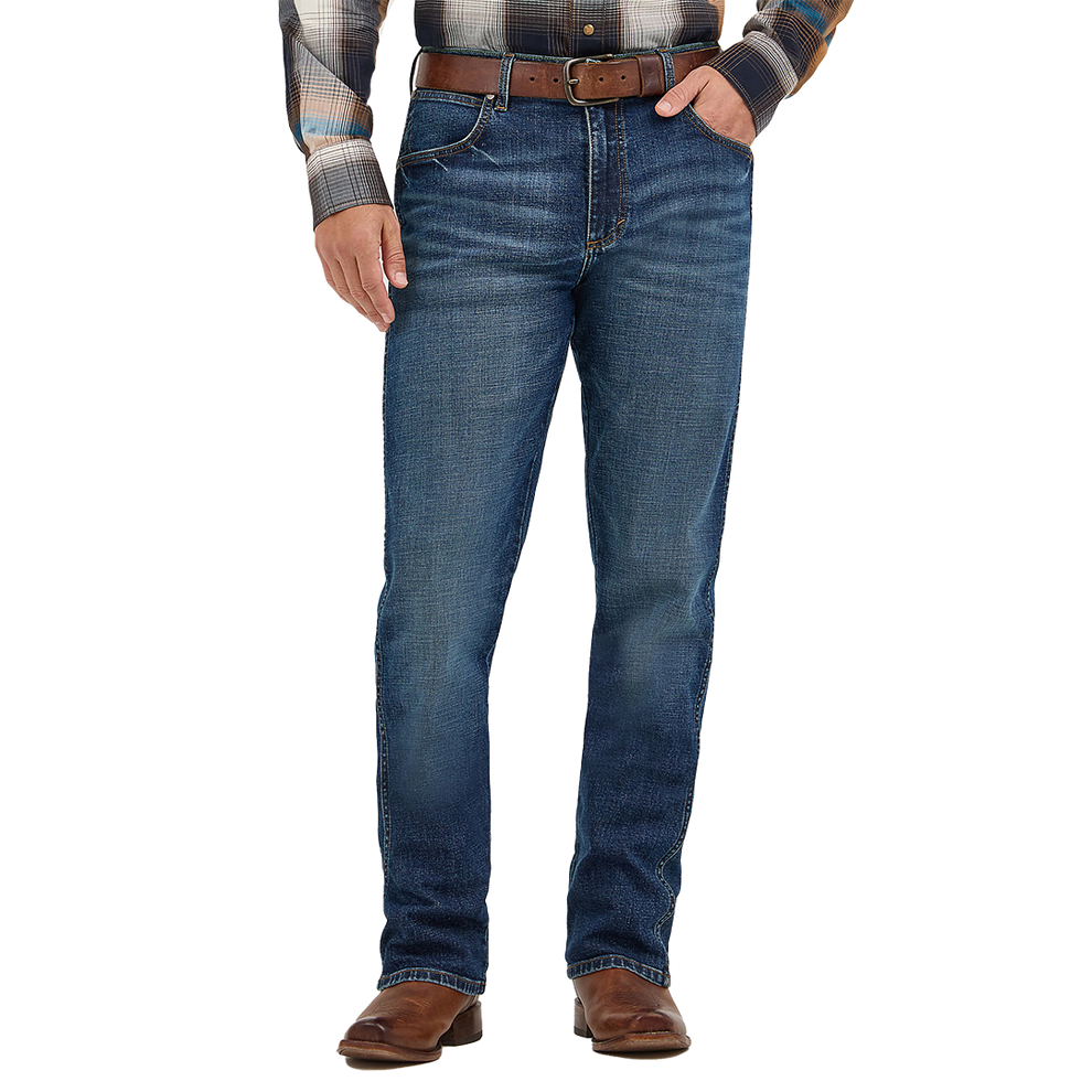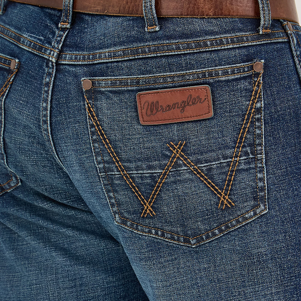 Wrangler Retro slim fit jeans nod to our history while introducing fits and washes suited for the modern cowboy. Designed with a closer fit and leg opening that still falls comfortably over boots, our men's Wrangler straight leg slim fit jeans add extra style to the classic look you love. These jeans sit low on the waist and make it easy to show off your favorite belt buckle. That design detail is our Western heritage showing through, something that happens often with the Wrangler Retro collection.