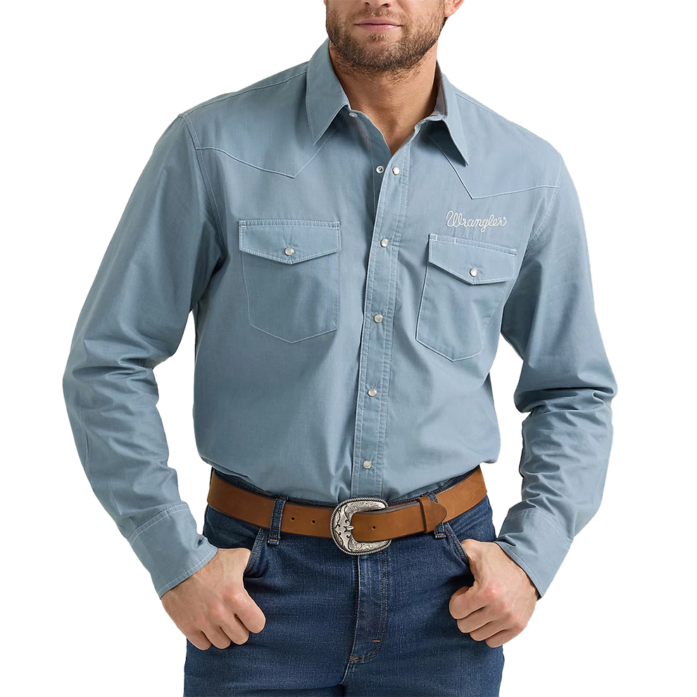 Our Vintage-Inspired Western Snap Work Shirt comes with everything you'd want, including the "W" pocket stitching, pearl snaps, one-point yokes, and adjustable cuffs. It's made of 100% cotton for comfort and durability through work, play, and whatever else is on deck for the day. Plus, it features a curved hem for versatility and a regular fit that's not too tight or too loose.