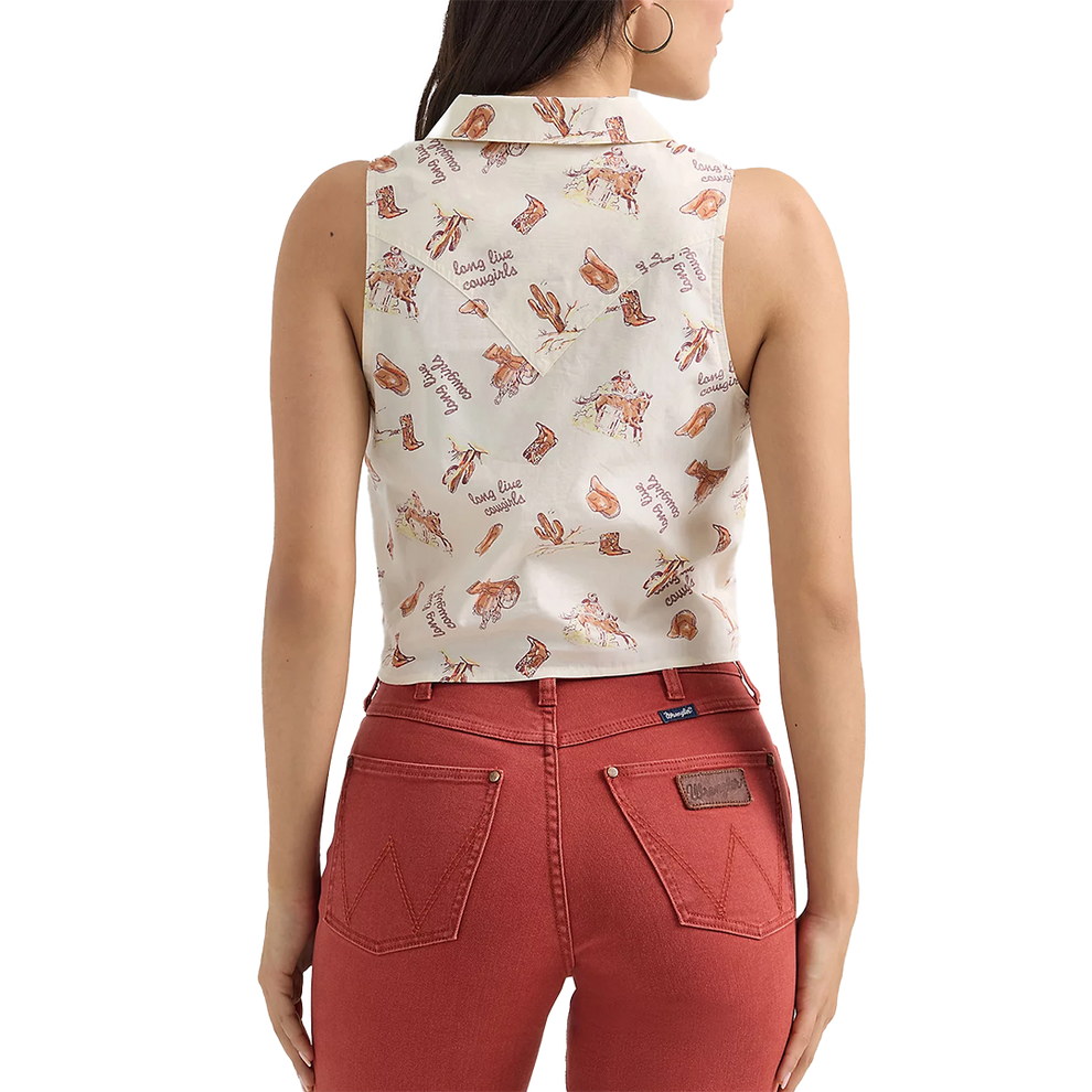 Western-inspired style in a sleeveless silhouette you can wear all season long. Our Women’s Printed Tie Front Shirt offers everything a modern cowgirl could want. It’s crafted from cotton poplin for softness and nonstop comfort, complete with button front closure and a tie detail at the waist to give you a slightly cropped look your curves will love. It also comes with a notched collar, a patch pocket at the chest, and one-point yokes from front to back.