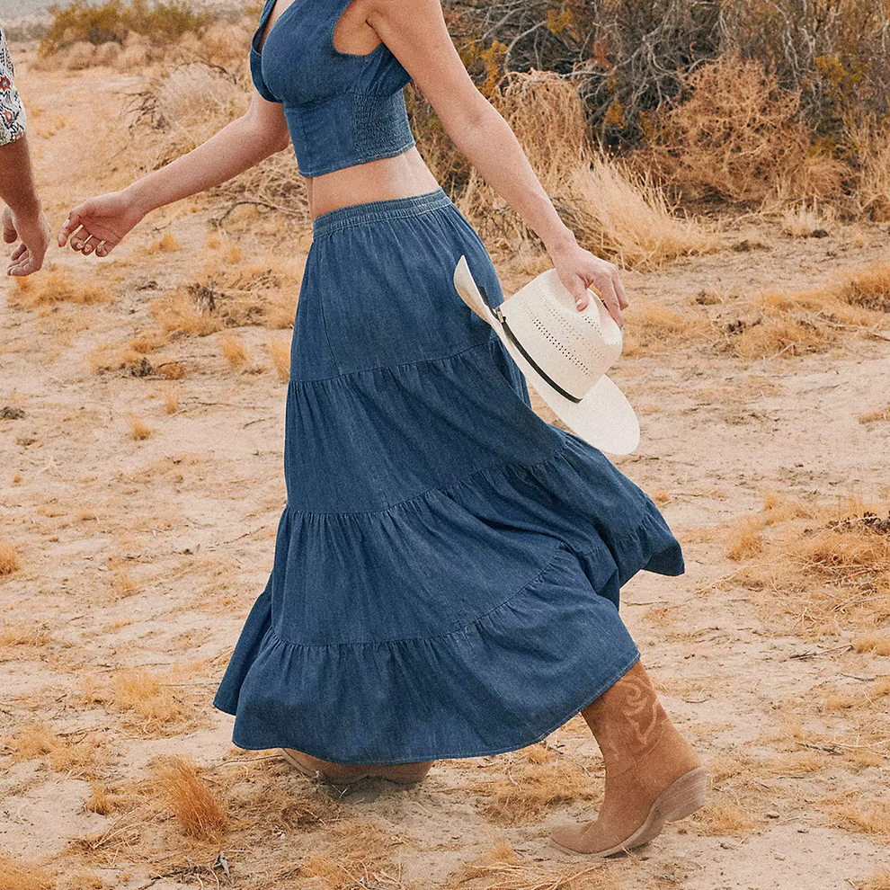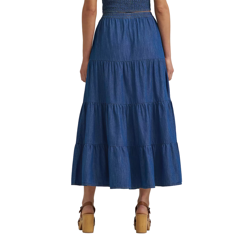 Every step feels like a statement in the Wrangler Retro Denim Tiered Maxi Skirt. Designed with a flattering A-line shape, this tiered maxi skirt accentuates your natural waist while adding graceful movement to your look. Crafted from cotton, it’s perfect for year-round wear and finished with a deep blue wash that goes with everything. An elasticized waistband provides all-day comfort.