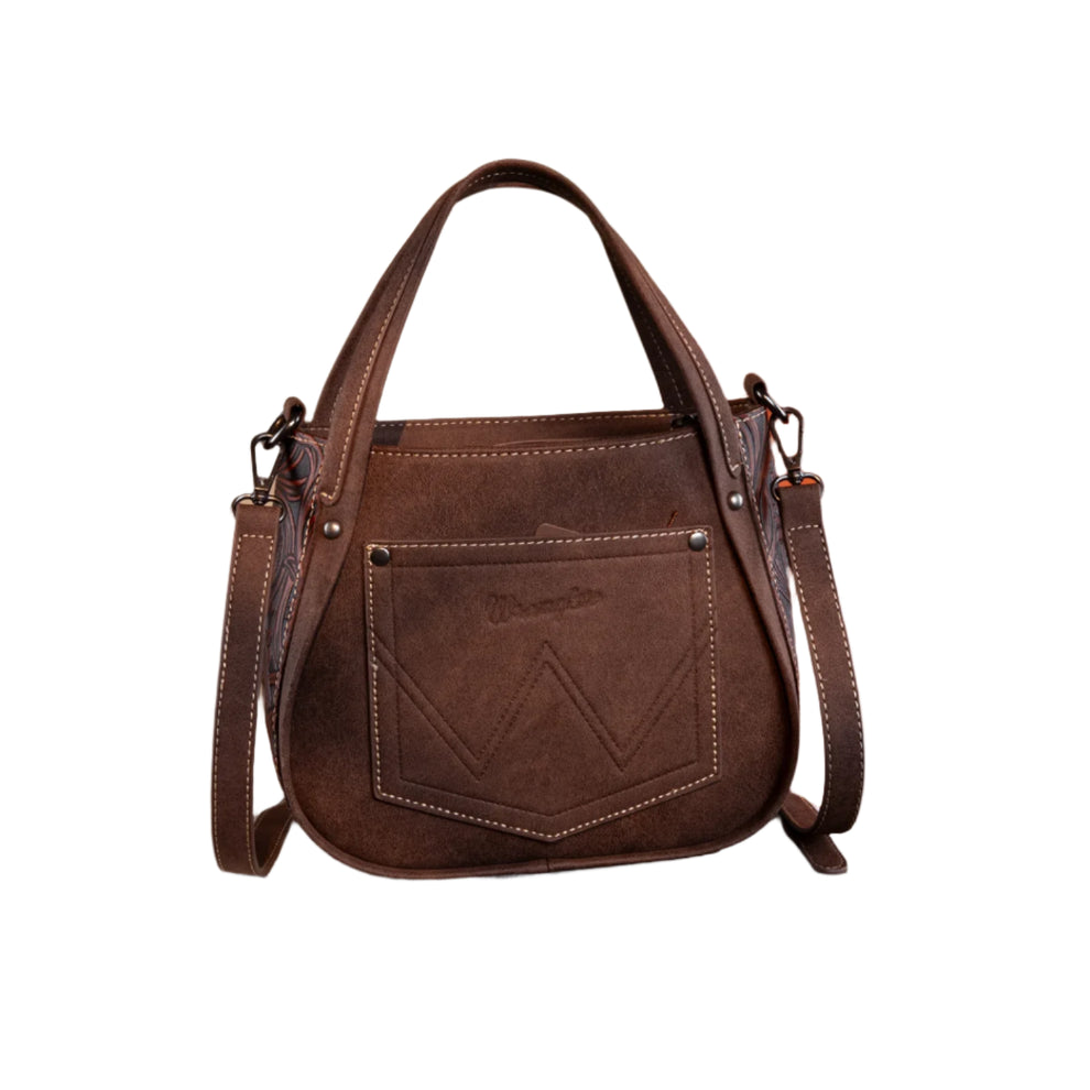 The Wrangler Women's Genuine Hair-On Cowhide Tote Crossbody blends rugged western style with modern functionality. The front features genuine hair-on cowhide for a unique, textured look, while both sides are adorned with intricate floral tooling for a touch of elegance. The Wrangler logo applique on the front adds a signature finish.