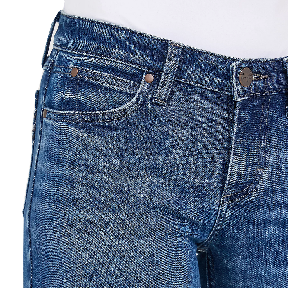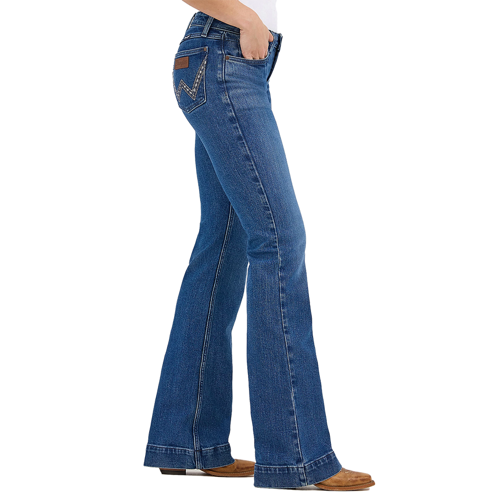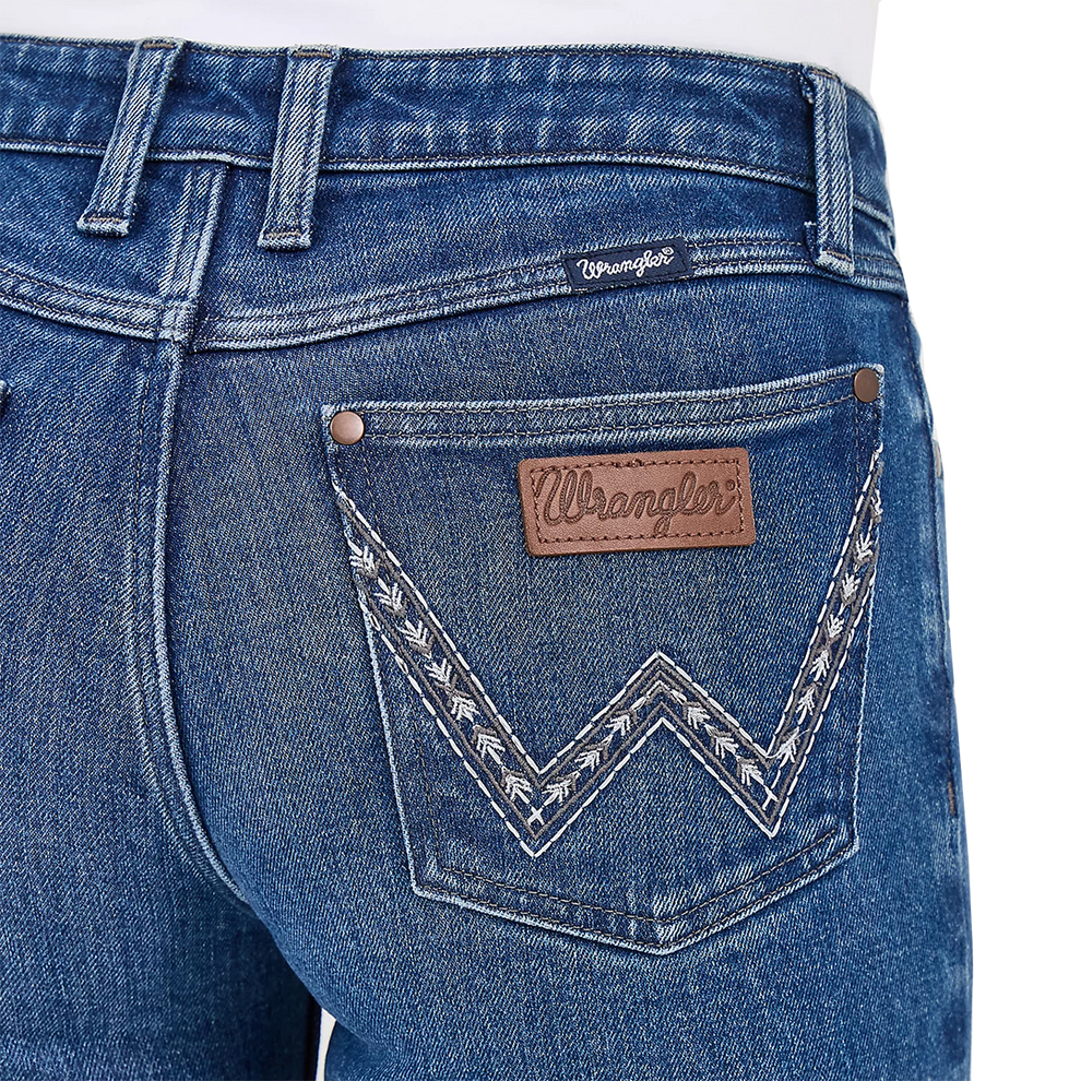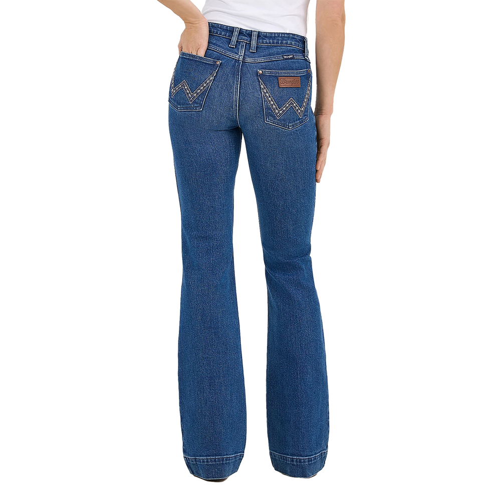 Trends may come and go, but the bootcut is forever. Our Women’s Wrangler Retro Bailey High Rise Bootcut Jean sets the bar high with a waist-nipping silhouette, a close fit through the thigh, and a slightly flared 17” leg opening that goes perfectly over boots. It’s crafted from cotton with just a subtle amount of stretch for comfort. Plus, the signature five-pocket styling, “W” stitching, and rope logo patch deliver the Western authenticity you want.