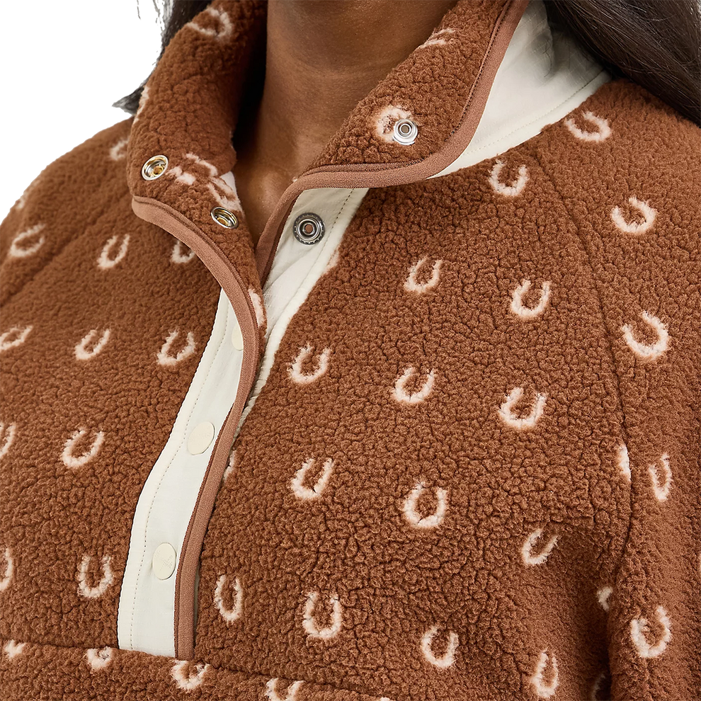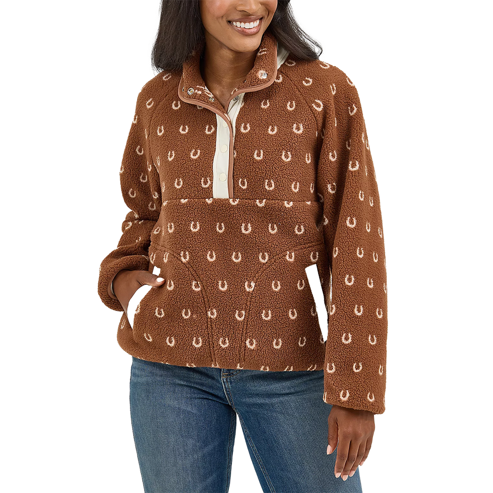 Stepping out in this weather? Not without the Women's Wrangler Retro 1/2 Snap Sherpa Pullover to keep you cozy. This cold-weather must-have provides the comfort and warmth that only sherpa can, complete with a Western-inspired design that’s sure to brighten up your rotation with cowgirl flair. It also features a partial snap closure, two lower pockets, contrast trim, and a looser fit you’ll love.