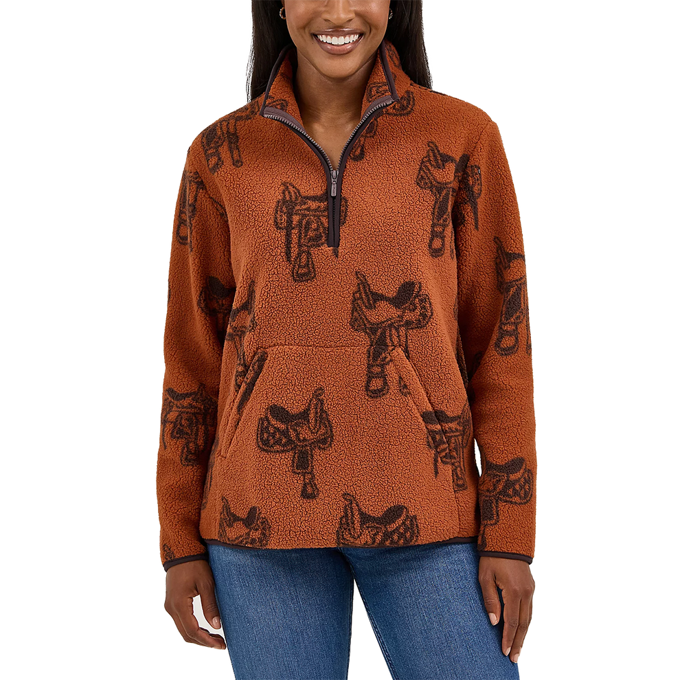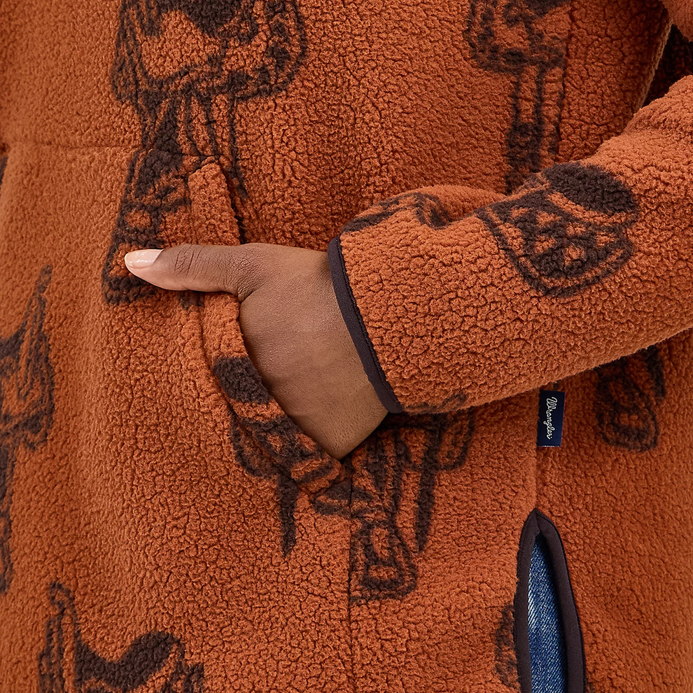 Full of southwestern spirit and cozy vibes, this Wrangler women's quarter-zip pullover is a versatile staple you'll be reaching for all season long. Its sherpa fabric offers plenty of warmth for an easy layering piece you can toss on over your favorite graphic t-shirts. The classic print adds a striking look and authentic style perfect for pairing with Wrangler jeans.
