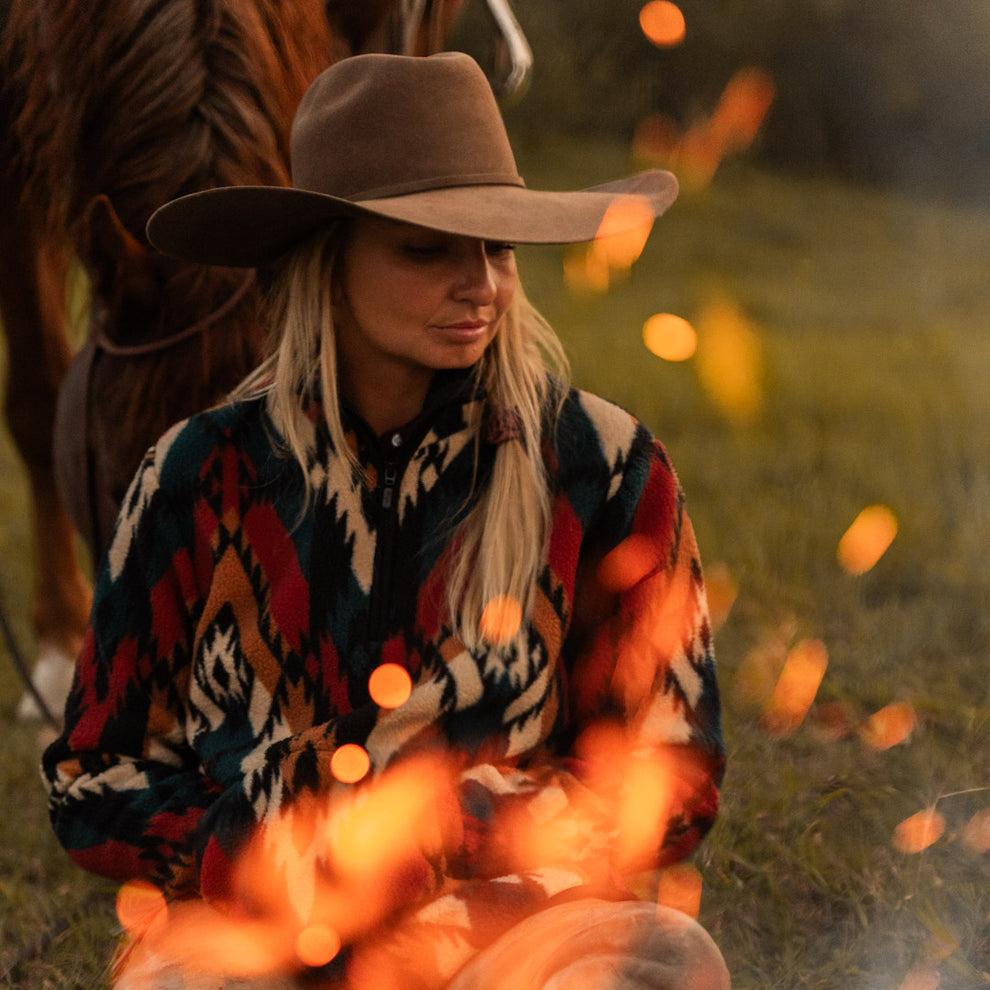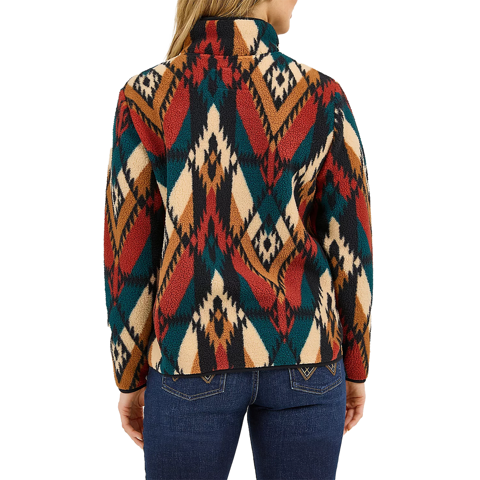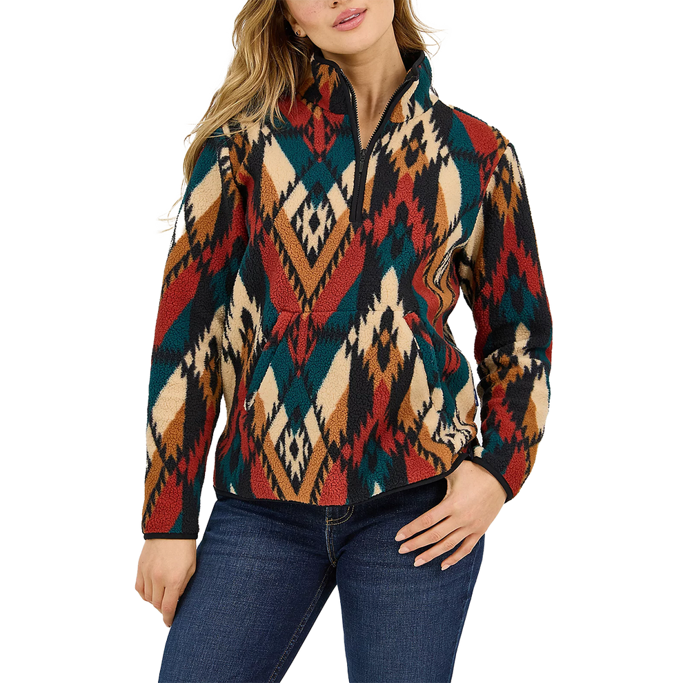Full of southwestern spirit and cozy vibes, this Wrangler women's quarter-zip pullover is a versatile staple you'll be reaching for all season long. Its sherpa fabric offers plenty of warmth for an easy layering piece you can toss on over your favorite graphic t-shirts. The classic print adds a striking look and authentic style perfect for pairing with Wrangler jeans.