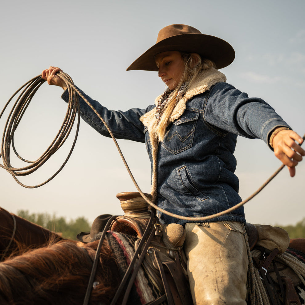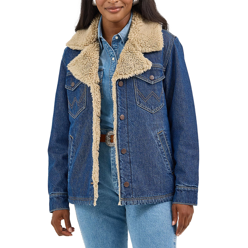 With cooler weather on the horizon, our Women’s Western Sherpa-Lined Denim Range Coat makes it easy to warm up your look without sacrificing style. It’s crafted from cotton and lined with sherpa to keep you cozy all season long. Plus, it comes with a slightly oversized fit that’s perfect for layering, two angled pockets for your essentials, two chest pockets with the “W” embroidery, and a notched collar delivering just the right amount of drama.